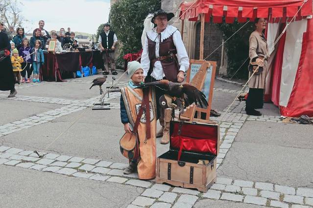 格里芬表演也是一个强互动性的表演,适合阖家观赏,主持人会选拔一个小朋友上台,按照中世纪的服饰为他装扮上,甚至还给了他一个称号,这个幸运的小孩还可以戴上手套感受呼唤老鹰,老鹰威风凛凛的停留在手臂上,小朋友真是肉眼可见的骄傲啊。