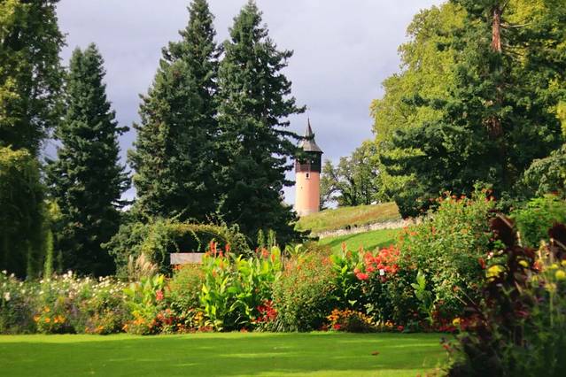 夏末到秋初,迈瑙岛上的大丽花花园是名副其实的花卉展示地。大约 12,000 株大丽花将岛屿的南坡变成了独特的绚丽色彩。沐浴在阳光下的大丽花有各种可以想象的色调、形状和大小。花坛布局宽敞,根据高度交错排列,从最小的 Mignon 大丽花到 2 米高的巨大品种。花园还举办了大丽花往后的选拔,邀请各位为自己心中最大的大丽花品种投票。