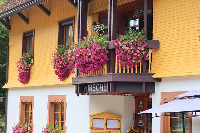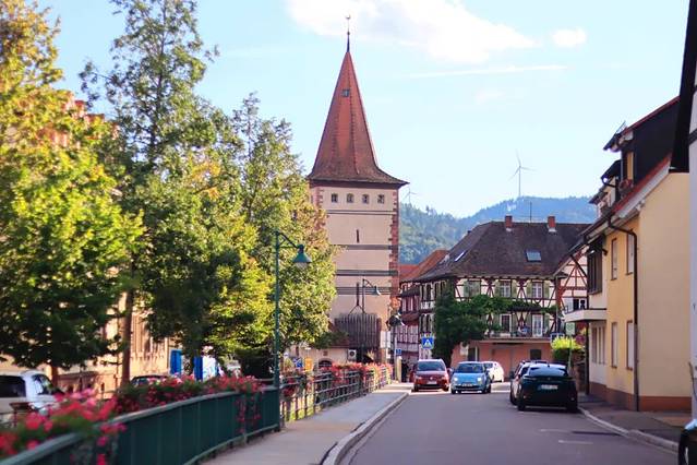 自驾45分钟或坐火车35分钟到根根巴赫。整个巴登符腾堡州,特别是黑森林地区,不乏漂亮的小镇,但是根根巴赫总是被称为是“黑森林小镇珍珠“。自驾进入根根巴赫小镇中心,我被中世纪风格的建筑环绕,半木结构的房屋是德国南部的标志建筑,家家户户在窗户上种满了天竺葵和牵牛花,确实美得如同童话,之前的疑惑自然也迎刃而解。
