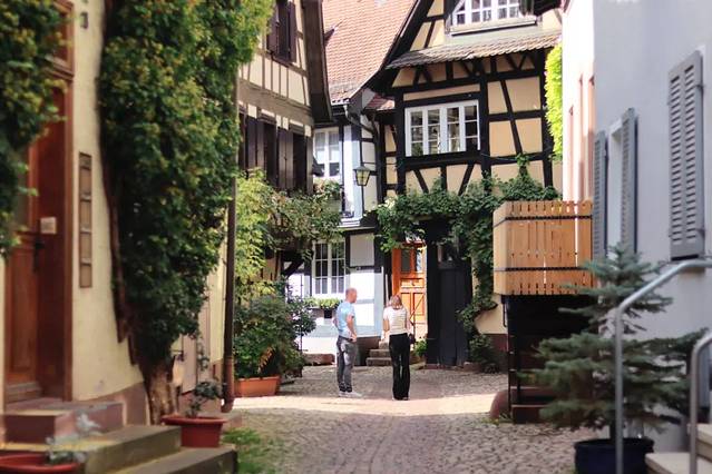 老城区里,古老的半木结构房屋鳞次栉比地矗立着。穿过鹅卵石,您会看到古老的行会和工匠房屋,它们见证了曾经在这里进行的工匠制革工作。居民用鲜花装饰的自家的外墙,让这个街区美得让人流连忘返,曾经制革工人在小溪里面洗涤刚剥下来的皮革,这里的味道当然不如现在这样的清新。如今的小溪从几个世纪的老屋前面潺潺流过,讲述着过往的故事。