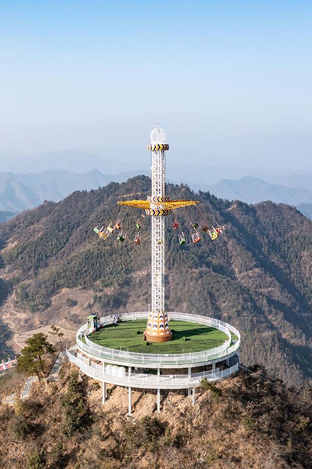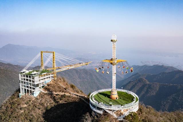 接着从半山可以乘坐二号缆车到山顶,山顶可以一览千岛湖“千岛 千山 ”风光,还有更加刺激的空中悬挑玻璃观景长廊以及网红高空秋千等项目可以体验。这里非常适合小情侣,以及年轻游客来玩。