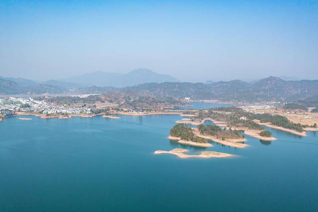 千岛湖,即 新安 江水库,位于 浙江 省 杭州 市 淳安 县境内,是为了建 新安 江水电站拦蓄 新安 江上游而成的人工湖。将原本的崇山峻岭淹入到湖中成为大小岛屿,共1078个,故名“千岛湖”。如今分东南湖区、中心湖区、 西北 湖区、西南湖区和 东北 湖区,这五大旅游区。