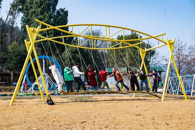 还有一个团队像是老顽童一样,玩起了一种“大秋千”。