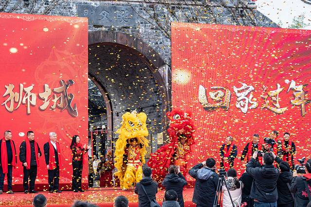 元旦假期的第一天(12月30日),上午的姜家镇锣鼓喧天、彩旗飘飘,因为在文渊狮城门口有一个回“家”过年开城仪式。这样的场景也格外的有年味,我们看了舞龙舞狮、还有一些关于姜家镇,关于狮城的介绍,人物访谈等等。