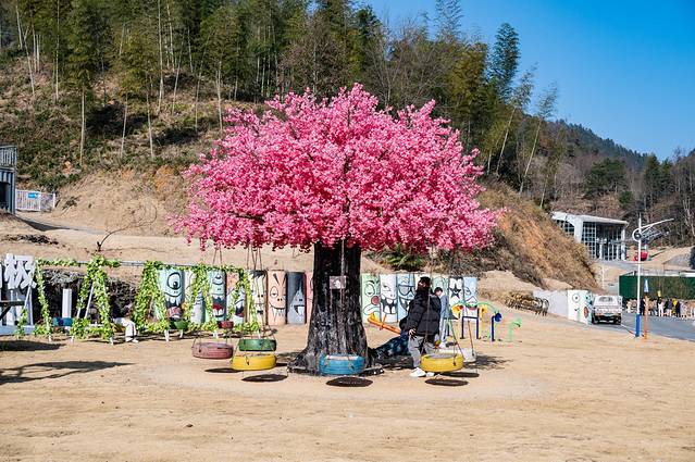 第二天的下午,返程途中我们来到了沪马探险乐园。万万没想到,在千岛湖畔还有这样一座建在山上的沪马探险乐园。乐园是位于姜家镇的球山村,是一个以户外探险为主题的山地乐园。