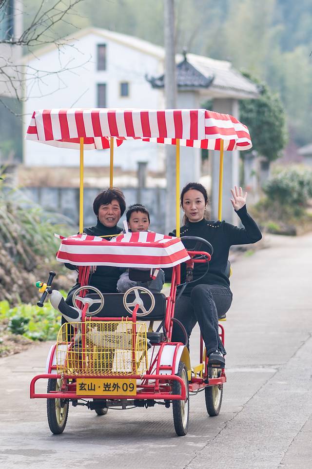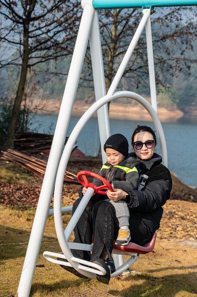 民宿的公共设施以及周边环境也是我们选择它的理由。奶奶带着小葫芦,祖孙两人玩了好一会滑板车,然后又加上小葫芦妈妈一起骑了民宿的双人自行车在湖边溜达。