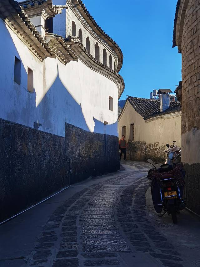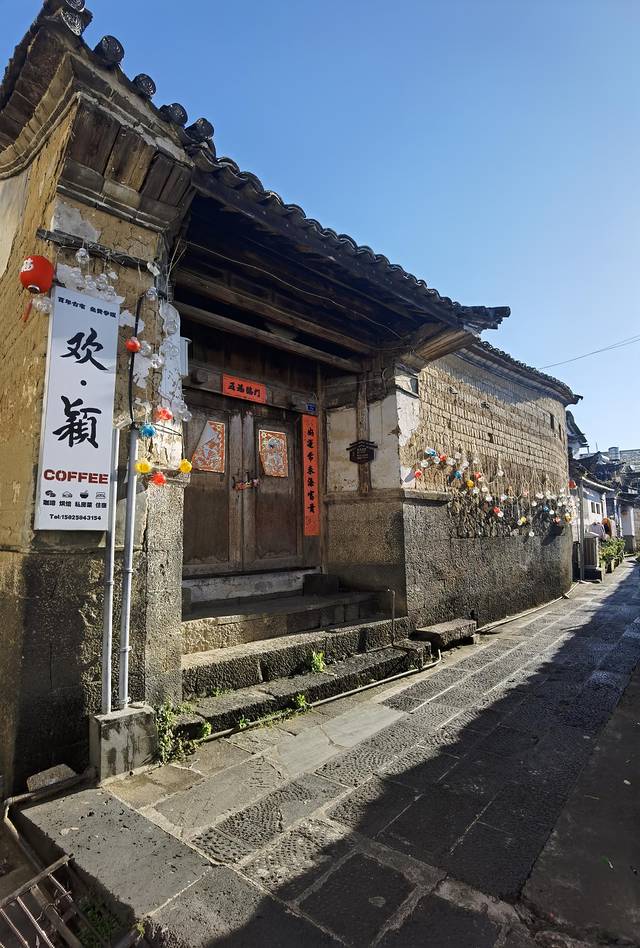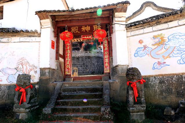 古镇的道路弯曲狭窄,在老板的带领下,我们慢慢前行,经过财神殿