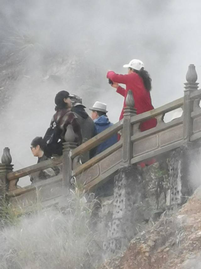 沿栈道下行,这里挤满了拍照的人群。