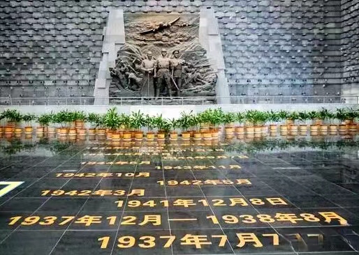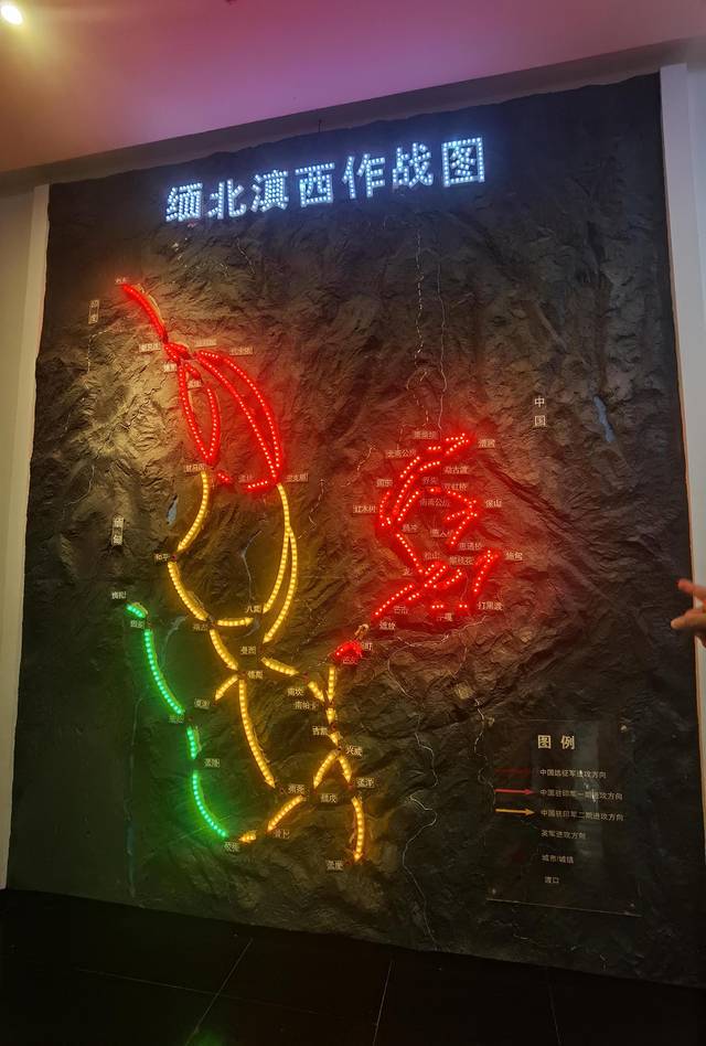 踏进纪念馆大厅,脚下一连串的数字是特别的时间节点,分别代表修筑滇缅公路、太平洋战争爆发、滇西沦陷、中国驻印军反攻、滇西远征军反攻、中国驻印军和滇西远征军会师和中国人民抗日战争胜利的时间。正前方的三人立体雕塑,中间是中国远征军将士,左边是滇西抗日民众、右边是国际盟军力量。这三股力量凝结成滇西抗战的中流砥柱,也是滇西抗战取得胜利的重要保障。