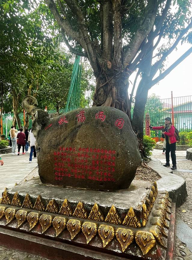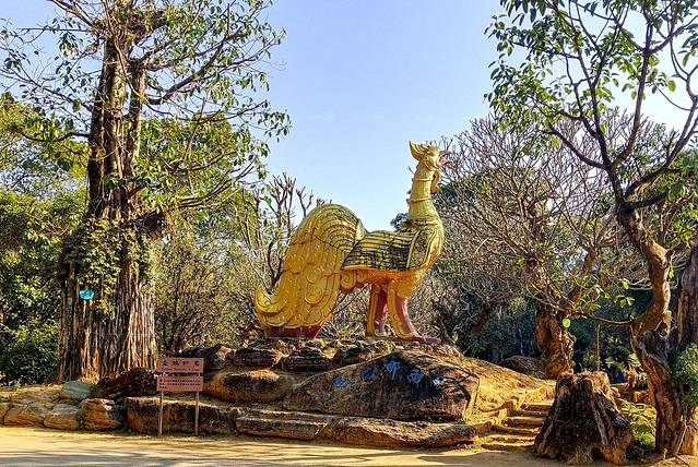 三岔路口,释迦摩尼的禽鸟化身金鸡阿鸾昂扬在古榕树前的岩座上,似乎在为这座黎明之城啼鸣。