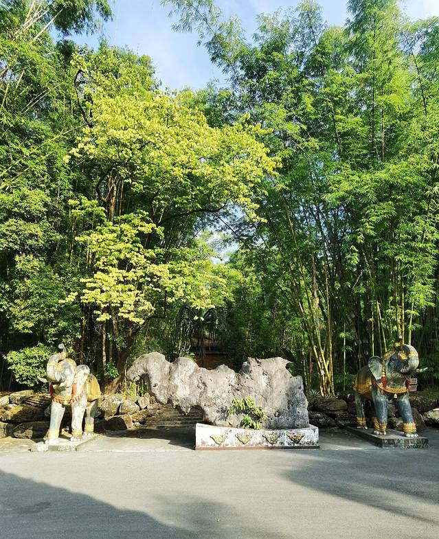 石象漫步在林边,挺拔的竹竿高耸入云,阳光透过竹林洒下丝丝光亮,真的是万般风姿。