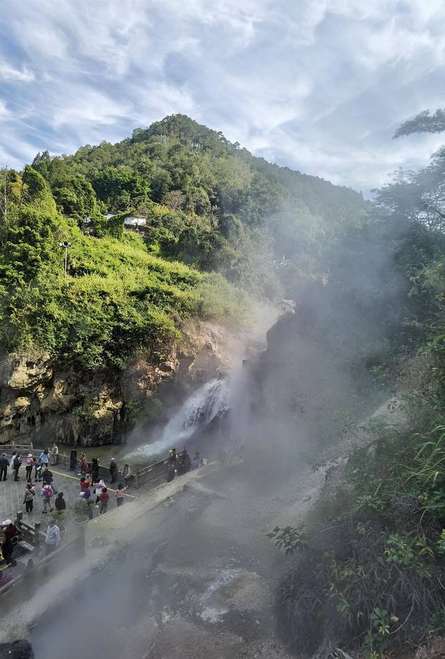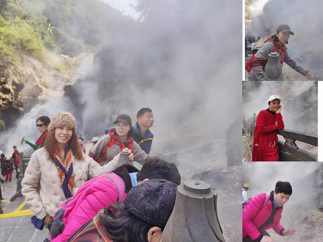进入景区,明显闻到空气中的硫磺味,这是由地热喷发出来的气味,远远的就可以看到山间蒸腾的热气。