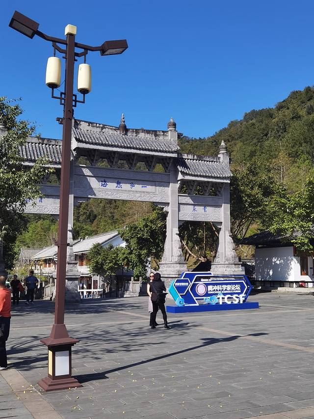 走进来就可以看到“一泓热海”的牌坊大门,这里距离景区入口约800米,有电瓶车(单程10元)可以直达景区门口。我们买了双乘电瓶车,在这有序排队上车。