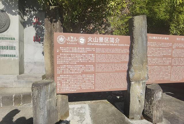 大门的旁边有整个火山景区的介绍,主要包括了大空山、小空山、黑空山、城子楼火山、黑鱼河和柱状节理。门票每人三十五元,电瓶车每人十五元,邵哥半票入园