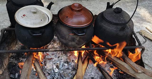 当地最著名的美食——银杏炖鸡,晶莹的银杏果配着自家散养的老母鸡,柴火慢炖,早到的天祥哥已经让老板炖上了。