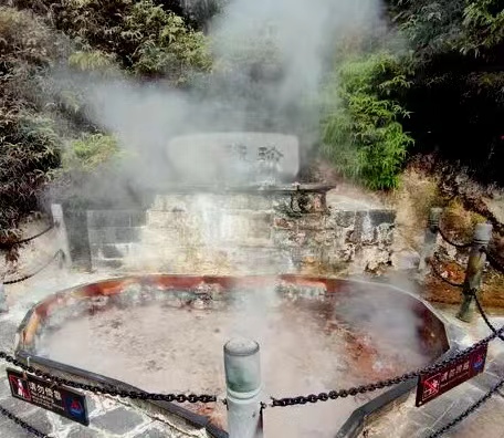 仙人亭下的“仙人澡塘”是多处温泉水汇集在这里,形成天然的澡塘,水池清澈见底,水中含有丰富的微量元素,能健康肌肤,在池中洗浴后皮肤滑腻,所以也被称作“美女池”。