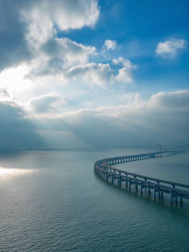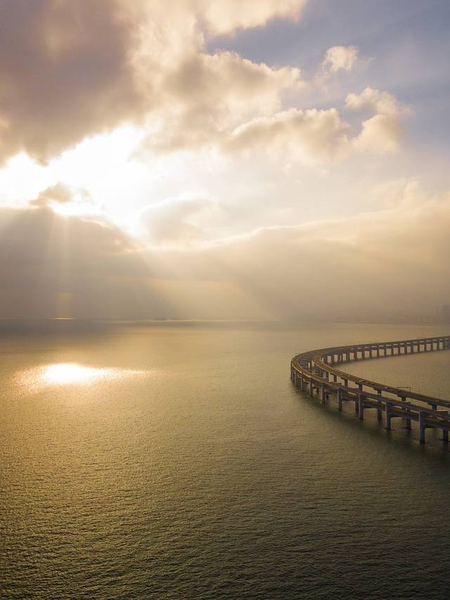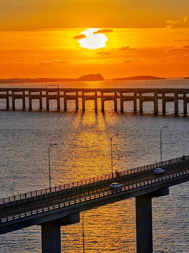 阳西 下时,在阳光的照耀下,大桥闪烁着金色的光芒,犹如一串璀璨的珠子点缀在海湾之间。车从大桥上驶过,就像是电影中出现过的场景,唯美,浪漫!