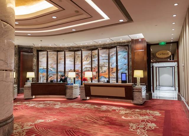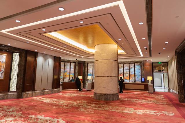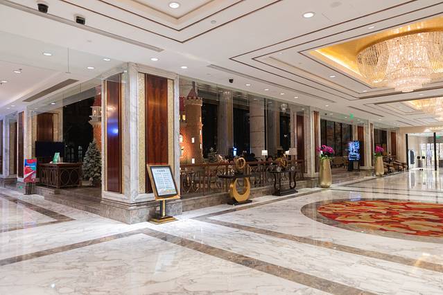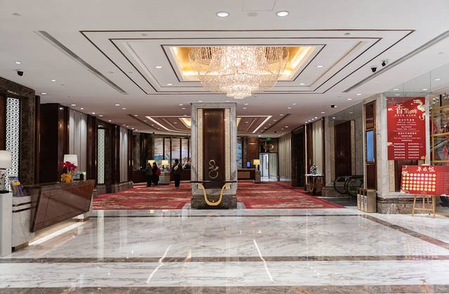 整个酒店的配色以红色为主,很喜庆有种提前过新年的感觉。高耸的天花板和璀璨的水晶吊灯,仿佛走进了一个梦幻的世界。大堂的设计充满了现代感,同时又融入了东方的元素,营造出一种独特的氛围。