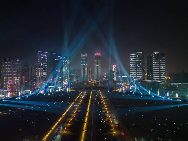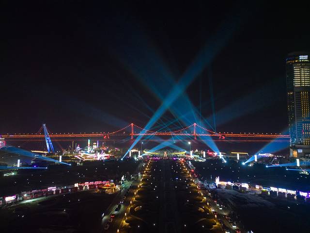 在 大连 璀璨的夜景中,星海广场的灯光秀真的是不能不提的一处。晚上表演正式开始,伴随着音乐,不同颜色的光束划破天空和海面,极具震撼!