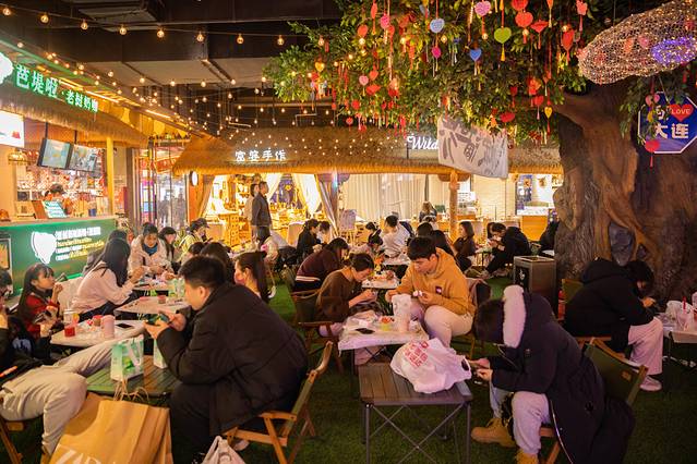 夜市的美食琳琅满目。有传统的 大连 小吃,如渔港炒饭、海鲜煎饼,让你品尝到地道的海滨风味;还有各地特色美食,如 四川 火锅、 东北 烤冷面,让你的味蕾穿越千里,领略不同地域的风情。