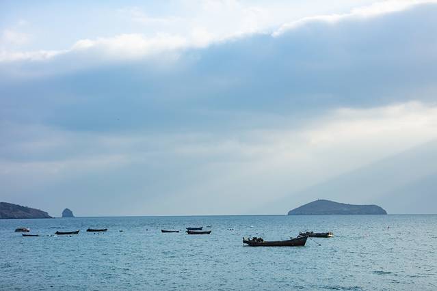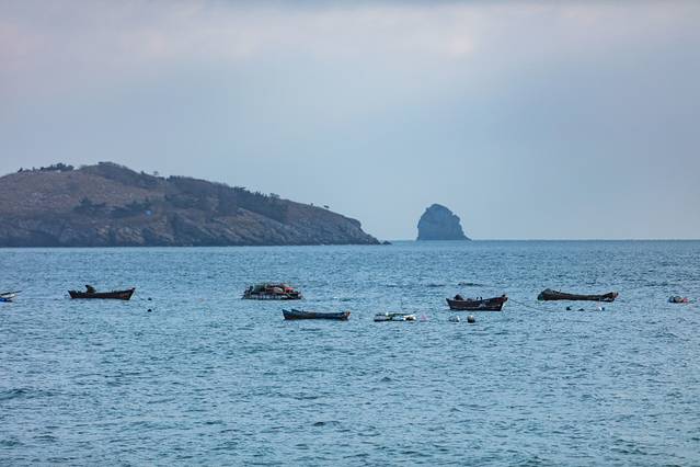 银沙滩三面环山,一面 临海 ,是一个天然的良港。当海浪拍打着海岸线,呈现出一片银白色的壮观景象。冬天的海清澈,寂静,人也少了很多,虽然没有赶上下雪天,但依旧很美。