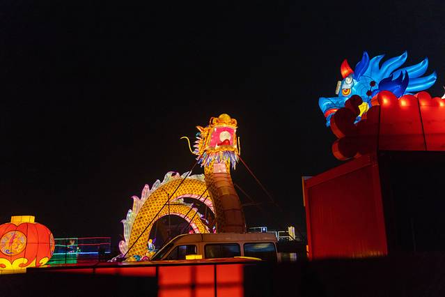 花灯大门进入就是一条仿古商业街道,但所有亭台楼阁,店面商铺居然都是花灯~今年是龙年,除了主灯一条大龙以外,还有很多可爱的小龙灯。