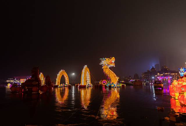 在 大连 过年,一定要去 东港 看灯会呀!你能相信吗?被CBD现代化写字楼环绕的码头区域,居然用花灯搭建出了一整条古色古香的街区!