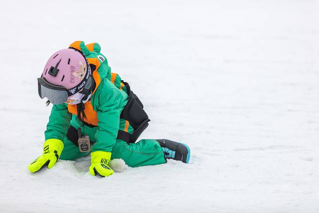 即便摔倒了也要站起来,一次不行就两次,两次不行就三次,在不断地摔倒后,依旧有重新开始的勇气,这就是冰雪运动那独特的魅力吧!