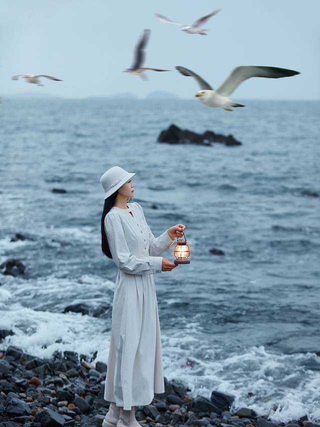 远处的海平面上,几只海鸥在翱翔,它们用翅膀去拥抱海风,用叫声去回应大海的呼唤。海鸥是大海的使者,它们带来了自由与快乐,也为这冬日的海边增添了几分生机。