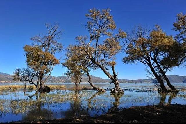 这离 喜洲 古镇不远,开车几分钟就到了。因状如“舌头”而得名,湛蓝的天空,没有一丝云彩,清透的海水,完整的倒映出天空的颜色,那一抹蓝,蓝得静谧,蓝得让人心醉。在这里,看枯木和流水的对话,静谧的空气里似乎传来它们的窃窃私语。好想听听它们在说什么,却被带着海味的海风吹散了。