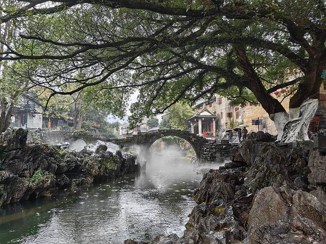 黄姚古镇小桥流水的优雅、参天古榕的壮观、青石古街的古朴以及楹联牌匾的精致,被赞誉为“黄姚四绝“。这是睡仙榕。
