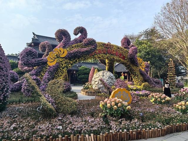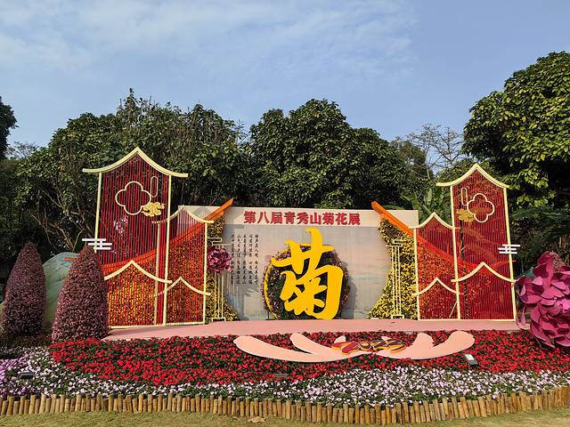 青秀山风景区于11月下旬开始在东盟友谊园举办的第八届青秀山菊花展。菊花展采用立体花艺、动植物造型等展示手法进行造景,营造出错落有致、层次分明、类型丰富的菊展景观。现场展出《龙凤呈祥》《菊舞芳菲》《采菊东篱下》等多组园林小品。