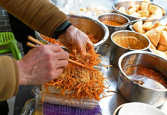 摆摊了几十年,只有两种口味。