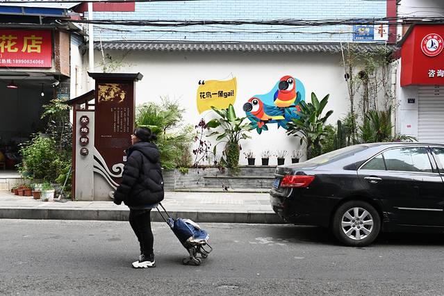 还有各式叫卖的花鸟店,为这条街,带来了勃勃生机。