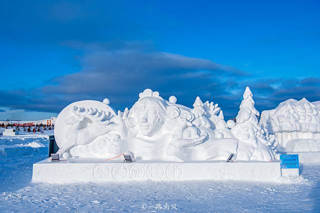 这些精美的艺术品在我们那边都是稀罕物,在蓝天白云下欣赏冰雪艺术品,更是极致的视觉享受。