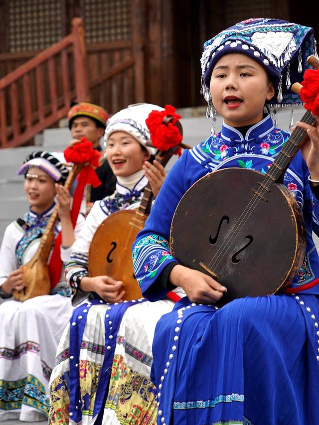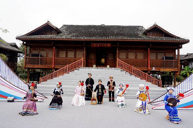 这里展示了布依族丰富的文化,包括服饰、农耕等,还有精彩的八音表演。布依八音使用的乐器非常多,有弹拨、拉弦、打击、吹奏四个类别,常用的是月琴、葫芦琴、牛角胡、刺鼓、铜镲、包包锣、小马锣和竹笛。表演者们用这些乐器演奏出美妙的音乐,让人陶醉其中。