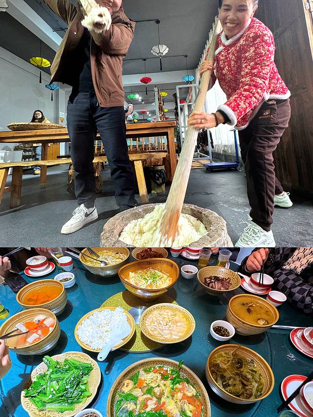 晚餐我们品尝了布依族的特色美食——布依八大碗。据说每道菜都是一道美好的祝愿。这些菜肴包括猪脚炖金豆米、红烧肉炖豆腐果、炖猪皮、酥肉粉条、排骨炖萝卜、素南瓜、素豆腐和花糯米饭。每一道菜都美味可口,让人回味无穷。