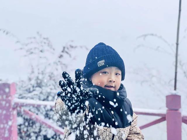 华蓥山的冬景如画,一片片白雪覆盖在山林间,像是披上了一层洁白的羽毛大衣。孩子兴奋地踩在厚厚的雪地上,发出“咯吱咯吱”的声响。他时而捧起一把雪,捏成雪球;时而用脚划出一道道美丽的弧线。而我们,则拿起相机捕捉这冬日里的童趣。