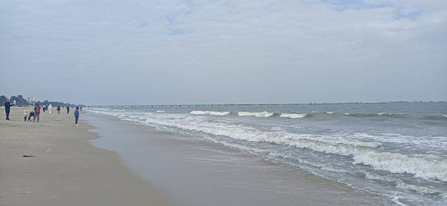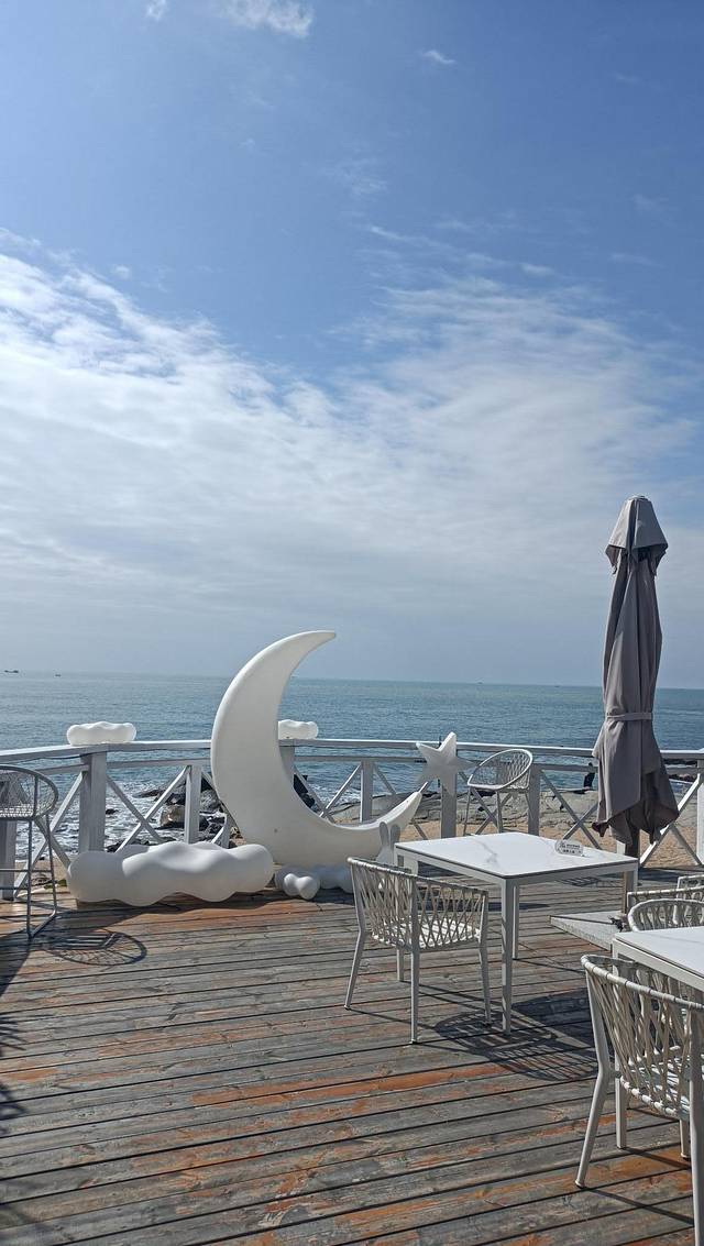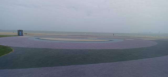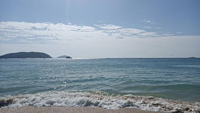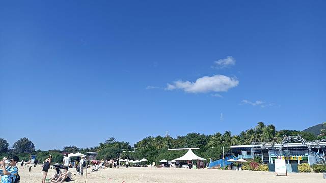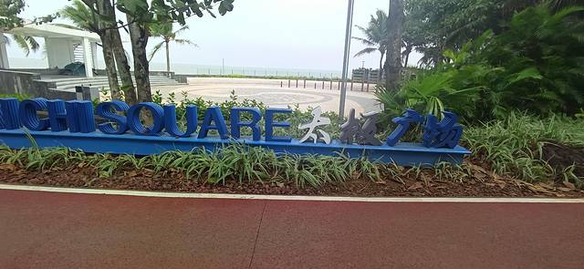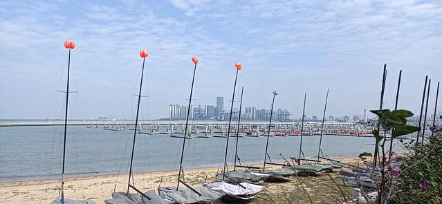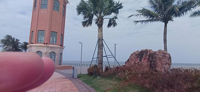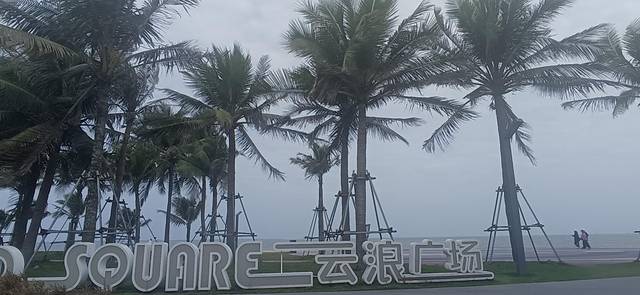 老样子转车到西海岸,不太方便。只是公交车站有些变化,在假日海滩下车。这时狂风大作卷起树枝洋洋洒洒,天际线忽明忽暗,但海水宁静,心中安慰一些。来的不晚人也不多,椰风起舞绿意盎然交相辉映,绿色蓝天白云沙滩建筑马拉松赛道林荫小路构成和谐图画。拾阶而下,来到海边,轻踩柔软沙滩,抚摸清凉海水,眼观远远天际,隐约跨海大桥,和第一次一样一样的。人生就是留念而不是贪念,每一次回转能看到当初情形就是美好。旺季已过,海边门店不在经营,可曾经印记依然存在,休息室,更衣室,娱乐室等等静默。钟楼永远直立叙述时间,观景台等待有缘人,休闲椅凳儿童乐园游玩设施畅想怀抱,比比皆是太人性化了。当代时代馆却关门大吉,让人失望这是我最喜欢地方,有现实意义,有得有失吧。帆船基地游艇娱乐也休息了。和父母拍照标志性字体有些也不存在,或者是我没有找到,有些失落吧。