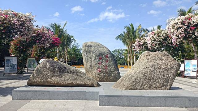 三亚一些热门景区的确取消门票,但交通不便。南山寺,南湾猴岛等这些景点依旧门票而且价格也不菲,没有答成一致意见。考虑天涯海角近,那知车上人山人海,看来目的一样,强行挤上去,司机直喊下,委屈至急,只好下车。上帝给你关闭一扇窗而给你打开另一扇门,天涯海角到头了,不吉兆,去了不好。只好取道更远大小洞天,南山寺方向。也许是冥冥之中,随意吧。巧遇双层公交,好久没有做这样公交,二层头牌,视野开阔,光线清晰,高瞻远瞩,近距离触角自然之美。沿三亚湾海滨道直行,尽赏海岛城市建筑,人文之美。又偶遇两种人谈论三亚温度气候形成,叹讨大学择业之重,心中特爽。外面碧海蓝天,和风暖洋,明媚春光,车内谈笑风生,谈古论今,其乐融融。近两个小时终于到了大小洞天府地。花个25元做个观光车,吹吹海风,看看海景,一半山来一半海水,一半火焰一半清凉,蛮有趣。终点是人造景点与联接自然地形,大人小孩都可玩,丰富之极。可以沿大路成行,也可以走风景小路,各有风光。风景小路花团锦簇,色彩斑斓,五彩夺目,芬香溢出,眼观感观嗅观同享。婚庆园打卡拍照重地,海边海枯石叙说不老传说。小洞天就是一块仅容纳几个人狭窄之地,一块巨而不大玩石,外明内而不黑,内凉而不潮,醉卧海边,观赏海天一色之地;而大洞天则是山之中奇形之石,一览众山小,一举目远方,高处大范围欣赏湖光山色。大小洞天其实就是当地知府访民情疾苦之时,发现好奇之处,留下笔记,其实也无大观。风景在每个人心中意义不同,旅行在于过程而不是终点。就于上述所说与两种人言论,才是快乐之极。小洞天来来回回钻几个回合确是好玩。对面山道而上,什么长寿树,大洞天,南极仙翁,试剑峰等等直至金顶,才是鼎峰之作。云海,云雾聊绕,非明非暗,的确之美。怪不得有人说,其实不好玩。从内心来讲,此景很一般,但作为游客漫步山水之间,领略自然之象,探索人间情感,才是旅游真谛。