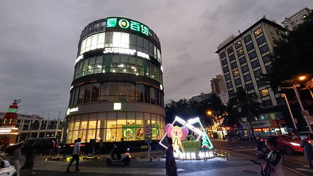 当初以为椰梦长廊如何如何,美不胜收,沁人心脾。实际就是观海大道,与大东海一模一样。面朝大海风景却可以。骑行也行,步行也可,游玩休闲兼备。草坪油油,郁郁葱葱,遮天蔽日,色彩缤纷,眼观可好。海月广场其实广场一座,胡思乱想,想入非非,与大东海相差无几,热闹可来一瞻。来三亚不也是感这趟混水啊 。解放路步行街依然不乍得,大杂烩,只是特产值得选购。想去免税城摇摆不定,意愿不强。干脆单体商城也不过如此,有合适却不满意。返回夏日百货大菠萝,热度猛然上升,不同凡 响,人多人多,挤来挤去,要的就是这味。以前住在这却没有瞧瞧,可笑。外观呈圆柱形,在灯光下通透的很。内饰清爽有度,格调有形, 以服饰为主;而大菠萝以吃喝玩乐为主,主打不一样。门口商业区活动众多,人来人往,好不热闹。