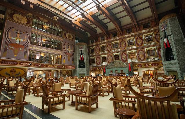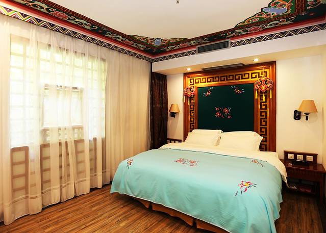 酒店内富丽堂皇,大小的样式都有着羌族的风情,出来之后沿着一旁的游步道上山,带着小朋友不太方便我们便决定乘坐代步的小滑车上山,节省一段游步道的路程,抱着宝贝看着风景,一路上山。