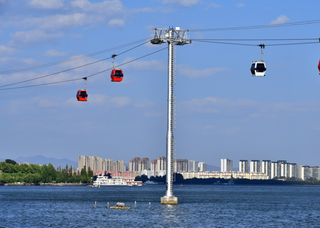下船之后可以选在在海埂公园附近吃点美食,然后可以乘坐滇池索道(箱体式)上西山,索道上行时间大约需要20分钟左右,乘坐滇池索道,犹如步入一条奇妙的观景长廊,脚下五百里滇池奔来眼底,烟波浩渺,头上浮云漫漫,如伸手可摘。