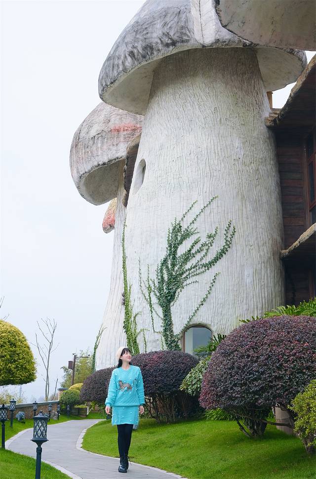 住进蘑菇野奢酒店!🍄从外面看,酒店的造型是一朵朵巨型蘑菇,既可爱又梦幻,仿佛走进了童话世界,非常适合带孩子来玩!