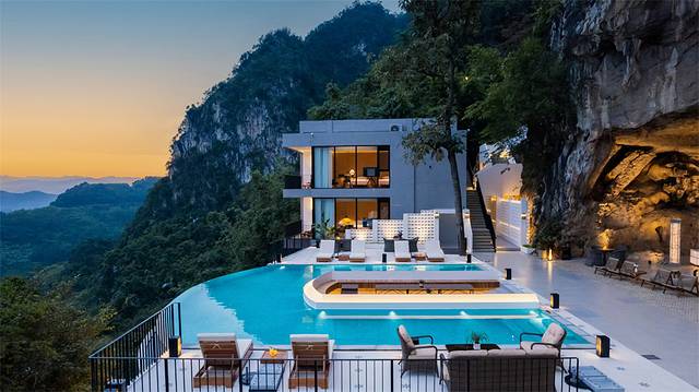 去了趟兴义,不小心还以为出国了兴义万峰湖的峰兮洞穴酒店,真的是野奢天花板~感觉就像住进风景里~太绝了。🌈整个民宿隐藏在大山深处,民宿仅9间房+2个三角树屋大床房,距离吉隆堡和万峰湖仅有15分钟。