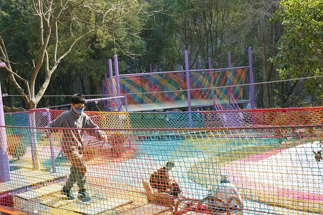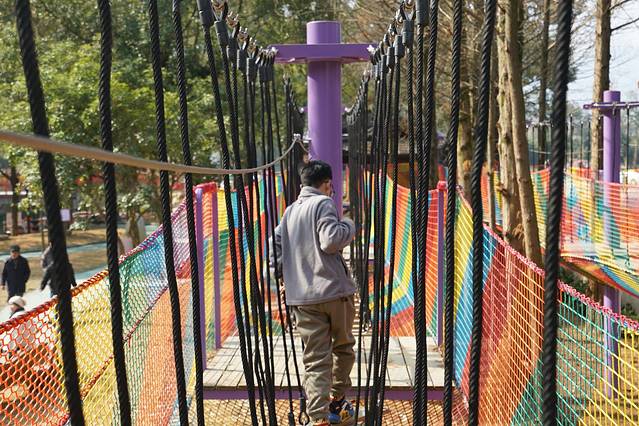 沿着栈道往上走,第一个刺激的项目就是微蹦极。恐高的话还是要做好心理建设的,但是和普通的蹦极不同,其实更类似于那种速降,玩的时候降到下面一层也会有床垫接着,还是挺安全的。