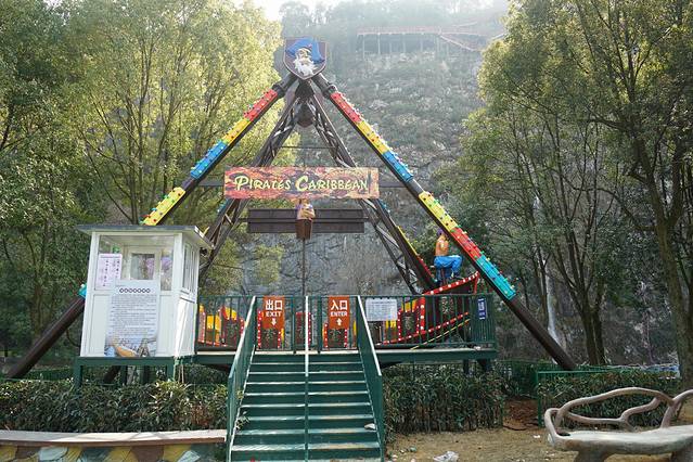 在悬崖上玩这个略刺激的游乐设施,肾上腺素又飙升了。有点类似海盗船的一个设施,当然当中的飞碟转盘在上下晃动的过程中本身还会旋转,就更刺激了。