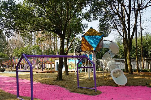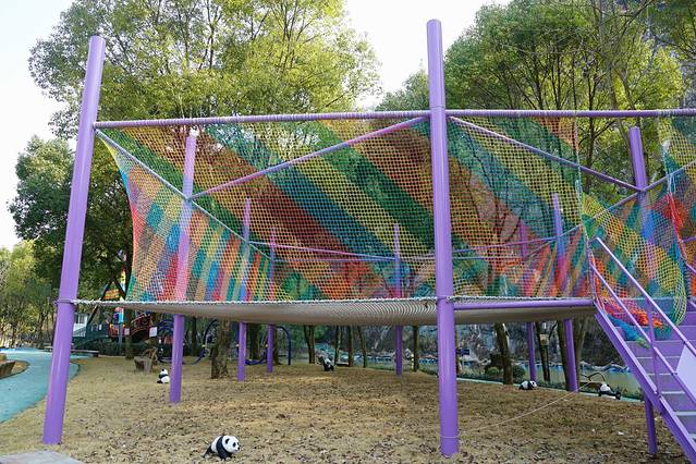 游船码头旁边就是一个儿童区,这里主要是一些无动力的游乐设施,比如蹦蹦云、蹦床魔网、多人滑索、小博士滑梯和秋千之类的,最刺激的就属海盗船了。很多小朋友都喜欢蹦蹦云和蹦床,当然成年人也可以玩,还能锻炼自己的平衡能力。家里的小朋友比较小的话,家长可以带着在这里晒晒太阳玩玩沙子。