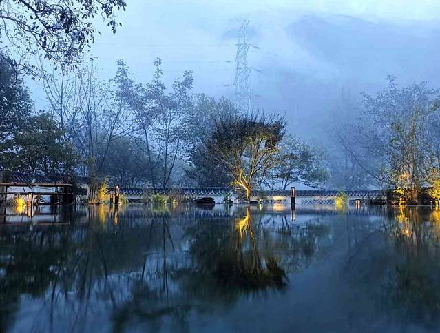 如果你是汉服爱好者,恭喜你会在这里找到梦中情景,无论是倚墙开放的银叶金合欢树还是纱幔下的亭子更或是汤池子里氤氲的热气都会让你秒变影视剧照女主角。