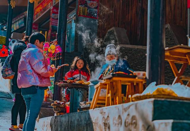 乘坐高空滑道,看着山野的景色,美好的让人想要留在此处,从滑道下来后便会经过一条小吃街,老板们的叫卖声让人觉得热情又亲切,吃过一根腊排骨后便继续向前山走去,前山的景点更为集中一些,游览起来也更加方便。